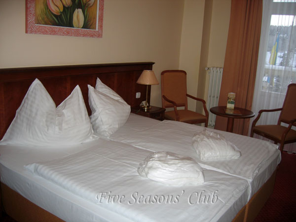 5sc Комментарии: Санаторий расположен рядом с Колоннадой, площадью Гете, соединен подземным переходом с санаторием Nove Lazne 5*. У каждого корпуса свое лечение и питание. Возможно размещение с ребенком. Приглашаются педиатров, 2-3 раза в неделю есть специальный гинеколог. Все надписи в санатории на чешском, немецком, русском и английском языках. В апартаментах большая гостиная, кухня, очень большая ванная комната.