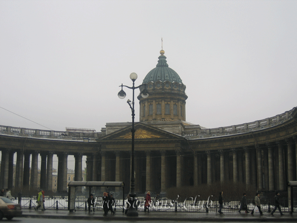 Перед Воронихиным стояла непростая задача – найти оптимальное решение по формированию северного фасада собора, обращенного к Невскому проспекту. Дело в том, что по церковным канонам алтарь собора должен быть обращен на восток и, следовательно, главный вход в собор расположен с запада. Эту задачу Воронихин решил с блеском. Торжественная дугообразная четырехрядная колоннада из 96 колонн с красивейшим портиком в центре и сквозными проездами по концам стала украшением Невского проспекта.