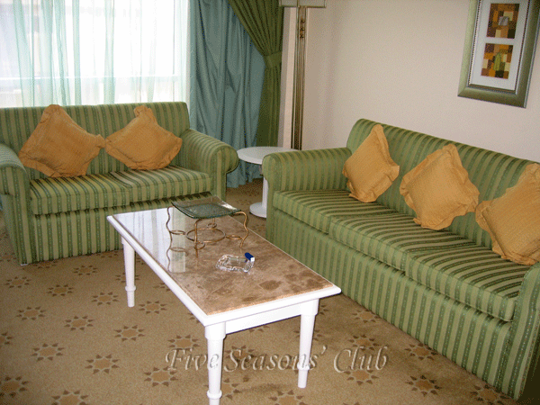 Tower Family Room: частичный или боковой вид на море, площадь 50 кв.м, максимально 4 или 3+1, есть дополнительный диван, можно разместить rollaway кровать, есть номера connection. Расположены в башне.