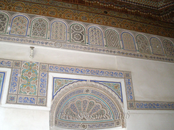 Дворец Бахия – одно из самых прекрасных произведений архитектуры исламского мира. Правитель Ахмед Эль Мансур Даби основал этот дворец по случаю победы над португальцами в 1578 году (в так называемой Битве Трех Королей). Дворцовый комплекс включает 150 комнат, просторные внутренние дворы и сады. Глаз радует яркая мозаика и восточный орнамент, которым украшены не только потолки и стены, но даже полы. Во время жары здесь царит прохлада, а в разгар дня с окружающих оживленных улиц не доносится ни звука. Кажется, дворец находится не в Марракеше, а в каком-то параллельном мире.
