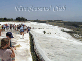 Сами водопады растянулись километра на 2 и бродить по ним довольно приятно и прикольно, а вот бассейн Клеопатры (он за дополнительную плату 10$ или 15$, уже забыл) подкачал. Как нам сказали чудодейственная вода источников, коей наполнен бассейн, хорошо восстанавливает последствия переломов и т.д. и т.п., причём ноги сломать можно прямо там, в бассейне, об разбросанные по нему остатки древних колонн и других остатков города, а вместе с ногами и рёбра поскользнувшись на чём-нибудь, перелезая через очередную груду древностей. Сам он представляет собой большой пруд с множеством страдальцев (причем почему-то в бассейне я слышал только русскую речь), пытающихся залечить какой-нибудь недуг или просто ощутить полноту пребывания в Паммуккале, чтобы потом не было мучительно больно от невыполненного долга праздного туриста.